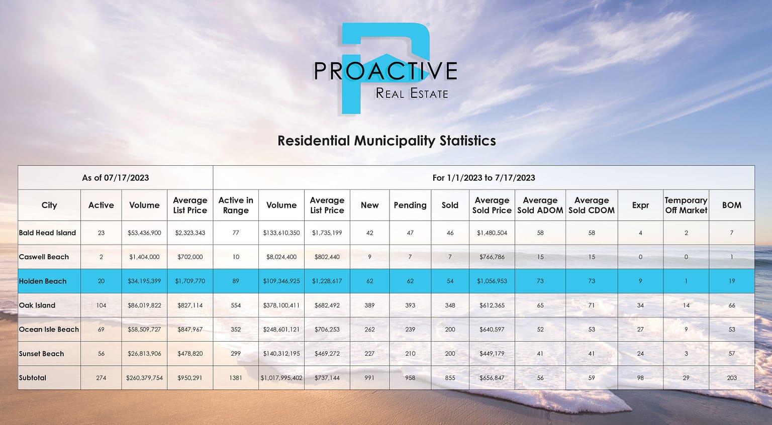 PROACTIVE Vacations proudly manages over 230 homes on Holden Beach, Oak Island, Caswell Beach, and Ocean Isle Beach.